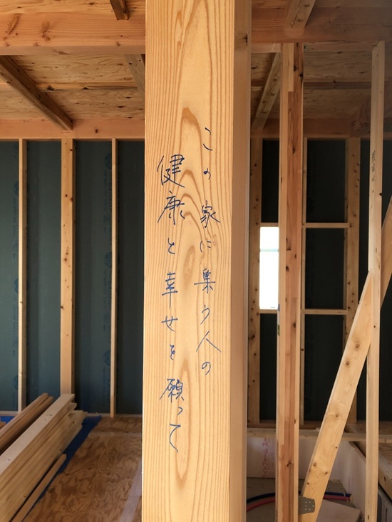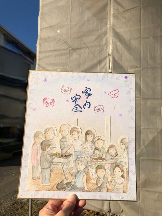 上棟当日はお施主様に記念の色紙をお持ちいただいていて