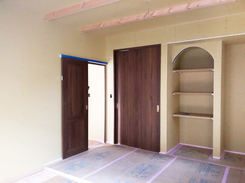 アーチ開口の棚には大切なものを飾られるためのこだわりのポイントの場所で、どのようになるのか私たちも楽しみです(^^)